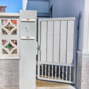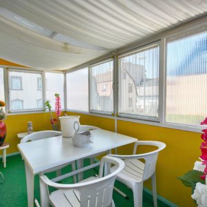 - Weiße Fenster aus Kunststoff mit Terrazzo-Fensterbänken innen