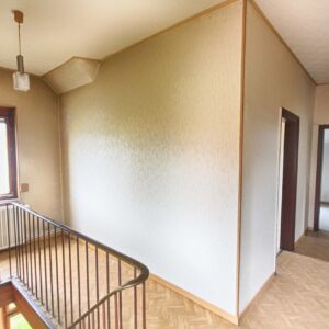 Das Haus verfügt über sechs helle und hohe Zimmer plus zwei Küchen und ein Bad. Das Bad befindet sich zwar im UG, es lässt sich aber auch eines im EG und OG realisieren. Somit könnten auch zwei praktisch geschnittene, voneinander getrennte Wohneinheiten entstehen. Das voll unterkellerte Haus bietet zudem einen Anbau, der als praktischer Hobbyraum oder als Werkstatt dient und idealerweise direkten Zugang zur Garage mit elektrischem Schwingtor hat. Die gepflasterte Zufahrt vor der Garage bietet Platz für zwei weitere Fahrzeuge. Im UG stehen zwei Räume zur Verfügung, die perfekt z.B. als trockene, kühle Lagerräume genutzt werden können.