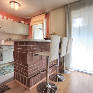 Der gemütliche Wohnraum mit seiner gemauerten Kücheninsel, ist mit neuen bodentiefen Fenster-Schiebeelementen ausgestattet und bietet den Zugang zu der großzügigen Loggia mit Abstellraum. Der Abstellraum verfügt über Licht und einen Stromanschluss und kann als Abstellraum mit einem zweiten Kühlschrank genutzt werden. Die überdachte Loggia geht fast über die gesamte Wohnungsbreite und bildet hier einen perfekten Ort der Entspannung. Sämtliche Fenster der Wohnung wurden vor 3 Jahren ausgetauscht und mit weißen Kunststofffenstern mit 3-fach Verglasung versehen. Die einheitlichen Echtholzparkettböden wurden fachmännisch verlegt und sorgen für eine gepflegte Atmosphäre und Gemütlichkeit . Der Schlafraum bietet, neben dem Platz für ein großes Bett, auch ausreichend Platz für einen großen Kleiderschrank.