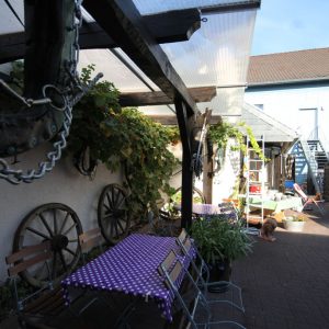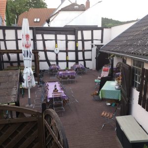 Dieses in der Jahrhundertwende errichtete Mehrfamilienhaus wurde in den letzten Jahren erweitert, modernisiert und liebevoll ausgebaut. Das ursprüngliche Fachwerk des Haupthauses wurde durch eine Vorhangfassade abgedeckt und modern gestaltet, die Fenster wurden gegen wärmeisolierende Kunststofffenster ausgetauscht und das Dach wurde neu gedeckt. Der Gewölbekeller wurde saniert und die Heizung durch eine neue Gas-Brennwertheizung ersetzt. Die Wohnräume wurden ebenfalls modern gestaltet und sind teilweise vermietet. Neben der vermieteten Studiowohnung birgt dieses Haus weiteres enormes Ausbaupotential, dem kaum Grenzen gesetzt sind. Ursprünglich war diese Liegenschaft als Metzgerei ausgebaut und verfügt von daher über entsprechende Kühlräume. Die spätere Nutzung als Gaststätte folgte dann aufgrund großer Beliebtheit als logische Konsequenz. Die gutgehende Gaststätte mit seinem im Innenhof befindlichen Biergarten ist seit Jahrzehnten eine Institution in der kleinen Dorfgemeinde und ist über die Ortsgrenzen hinaus allseits bekannt. Ein Umbau oder eine Nutzung als reiner Wohnraum ist hier natürlich auch möglich. Da hier kein Bebauungsplan besteht, greift der §34 Nachbarschaftsbebauung. In diesem Fall sind auf einer Grundstücksfläche von rund 630 m² zwei Vollgeschosse plus Dachgeschoss möglich. Das heißt z.B. 4-5 Wohnungen á 80 m². Insofern ist diese Variante auch für Investoren interessant.